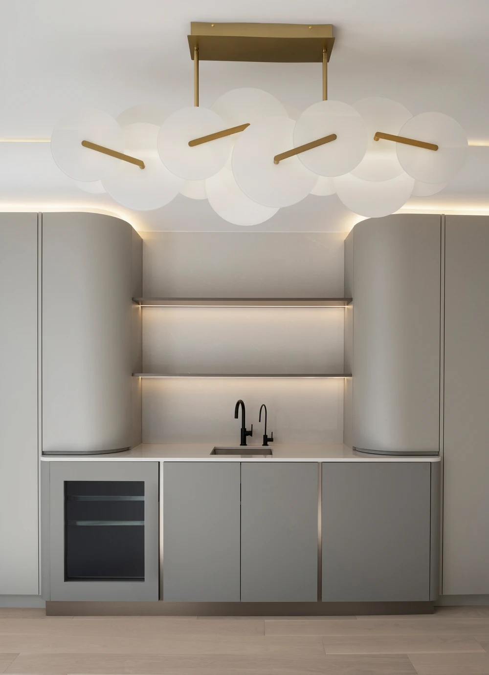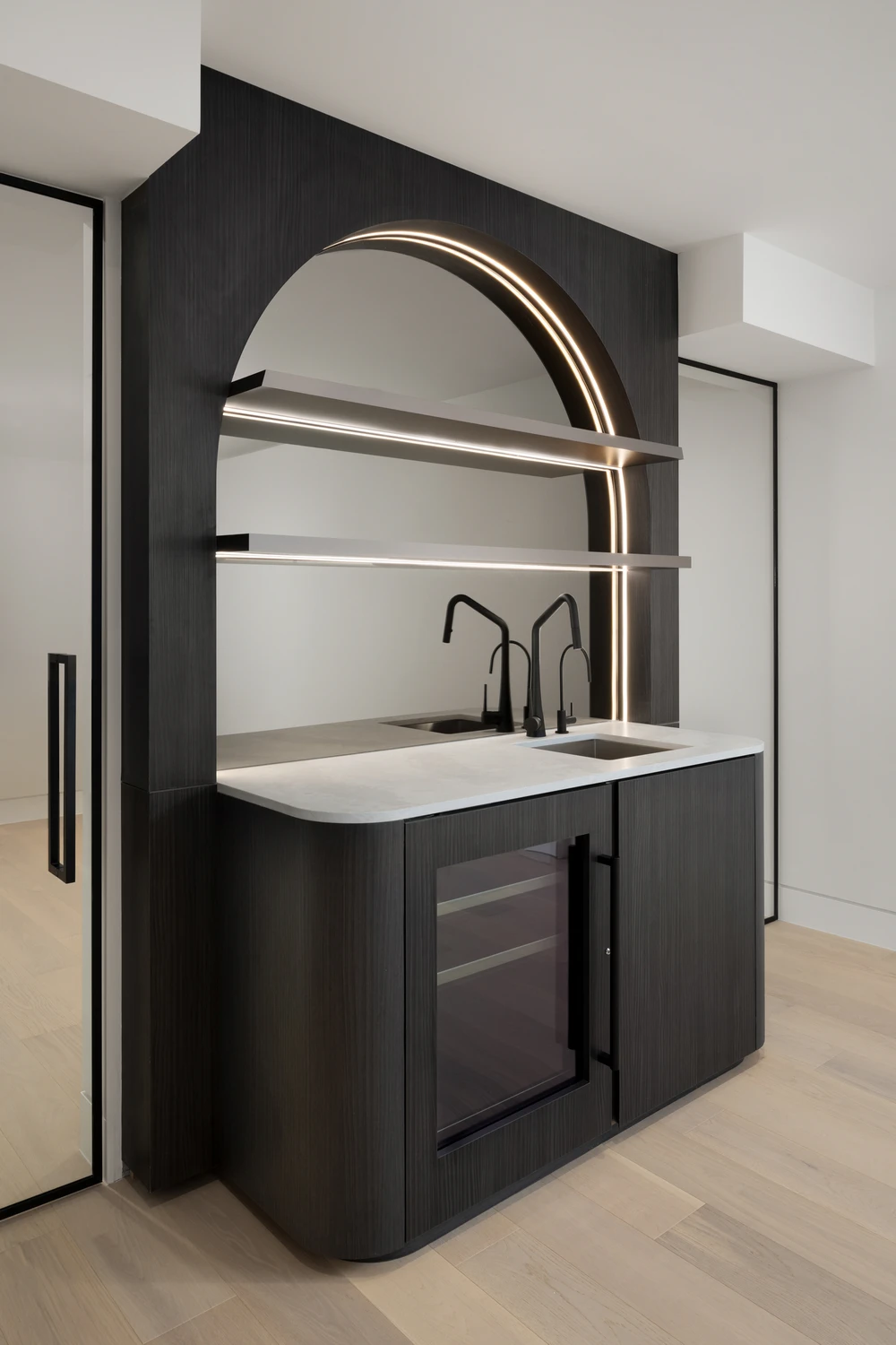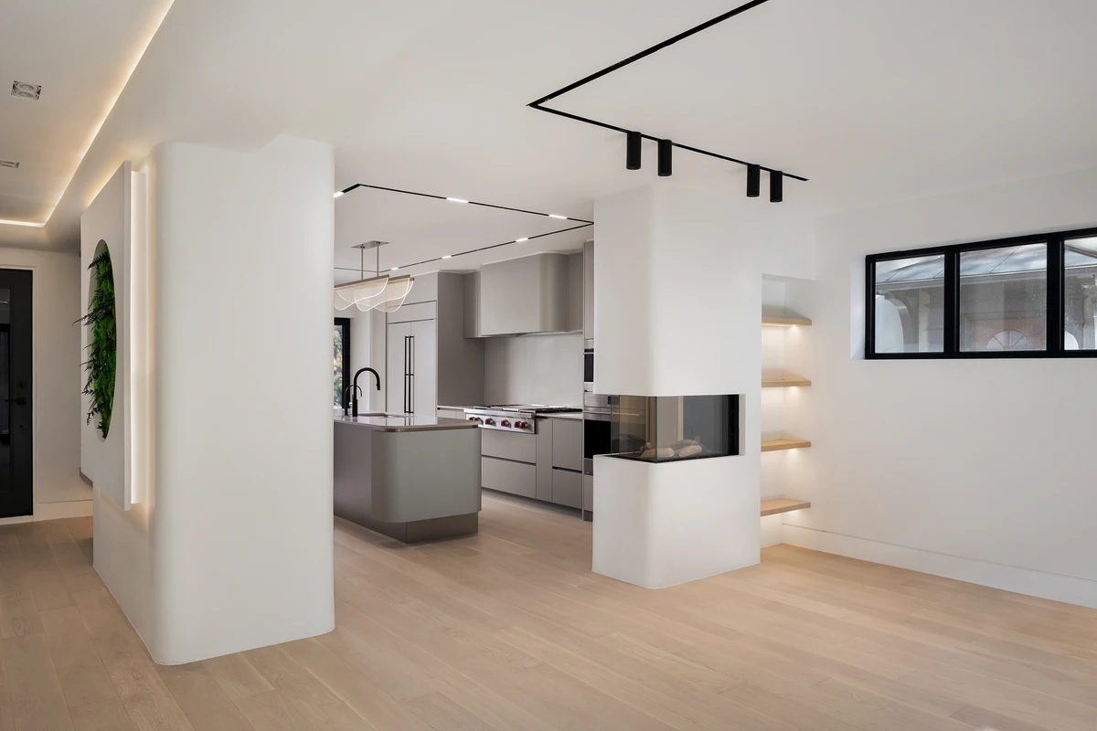 13 feet illuminated Onyx slabs, hand-built stucco mantles, a fully custom-made walnut office as well a Radiant Heated Floor not only make the space appealing but also make it quite comfortable to live in.